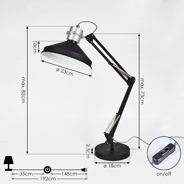 Zudem verfügt diese Tischleuchte über einen An- & Ausschalter am Kabel. Kabellänge 192 cm