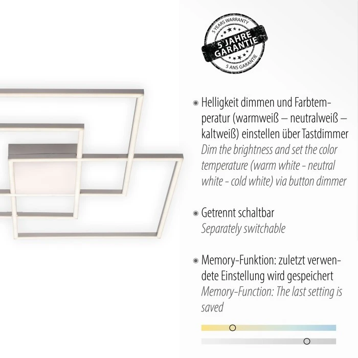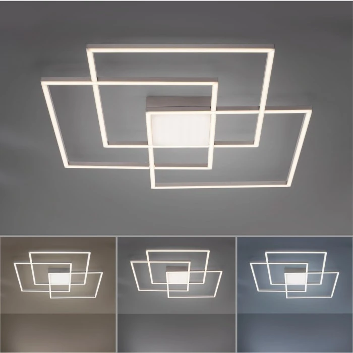Leuchten Direkt ASMIN Deckenleuchte LED Stahl gebürstet, 3-flammig, Fernbedienung